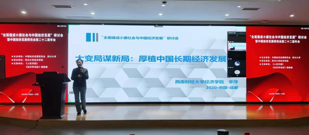 2020年11月21日,由中国经济发展研究会和四川大学主办、四川大学开云手机web版登录入口承办的“全面建成小康社会与中国经济发展”研讨会暨中国经济发展研究会第二十二届年会在四川大学开云手机web版登录入口成功召开。来自北京大学、中国人民大学、中央民族大学、南开大学、南京大学、山东大学 、复旦大学、吉林大学等国内高校和科研机构的60余名专家学者莅临参会,同时有近百位专家通过网络在线参会。开云手机web版登录入口程民选教授、王朝明教授、李萍教授、袁正教授、韩文龙副教授参加了此次年会。