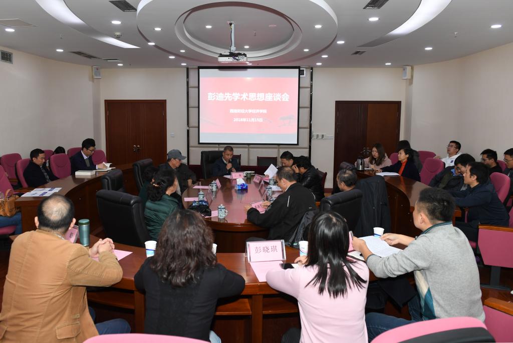 2018年11月15日下午,以纪念彭迪先先生诞辰110周年为主题的“彭迪先学术思想座谈会”在西南财经大学柳林校区格致楼918举行。此次座谈会由开云手机web版登录入口主办,彭迪先先生之女彭亚华女士、彭迪先先生之子彭少华先生等携家属出席,开云手机web版登录入口党委书记兰敏同志主持会议,学校党委宣传部副部长吴晶致辞,开云手机web版登录入口前院长刘方健教授、教师代表王朝明教授、蒋南平教授、吴垠教授、袁正教授先后发言,分别介绍了彭迪先先生的学术成绩、对学科建设的卓著贡献、对学校和学院建设发展的重要作用等。