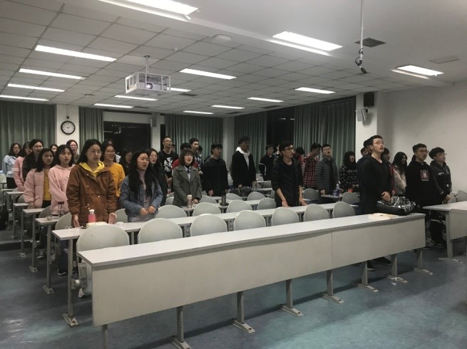 本次团日活动以清明节与五四运动一百周年为契机,开展了主题班会。活动伊始,全体肃立,在班委引领下悼念凉山森林火灾中壮烈牺牲的30名烈士。随后,秉承“青春心向党·建功新时代”的主旨,团支书赵宏达开展了“缅怀英烈 弘扬五四精神 继承革命优良传统”的主题演讲,从一百年前各界志士齐心协力,为维护国家主权发动的五四爱国运动,到革命先烈为新民主主义革命英勇献身的壮举,讲到“爱国、敬业、